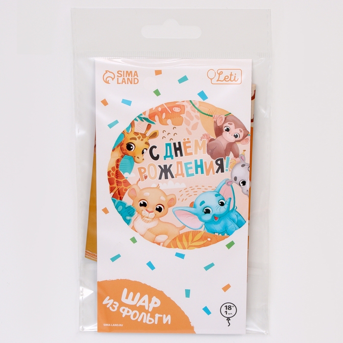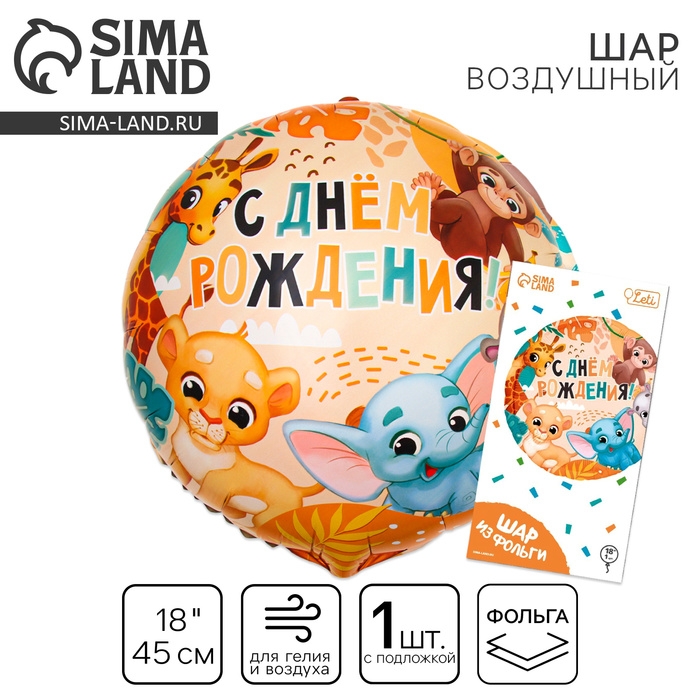 Воздушный шар фольгированный 18" «С Днём Рождения», сафари, круг, с подложкой