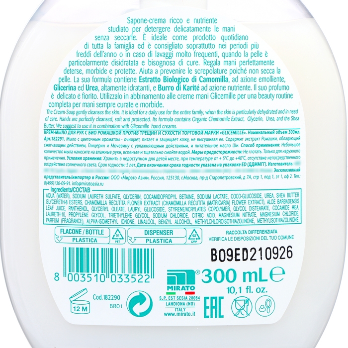 Крем - мыло для рук Glicemille с Био ромашкой против трещин и сухости, 300 мл