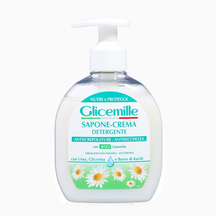 Крем-мыло для рук Glicemille с Био ромашкой против трещин и сухости подходит для всех типов кожи, включая чувствительную. Оно безопасно для здоровья и не вызывает аллергических реакций.