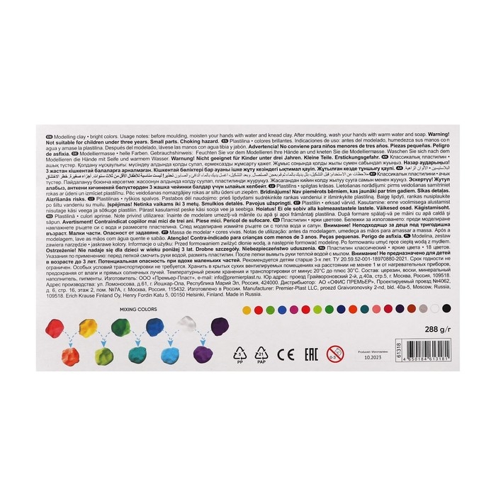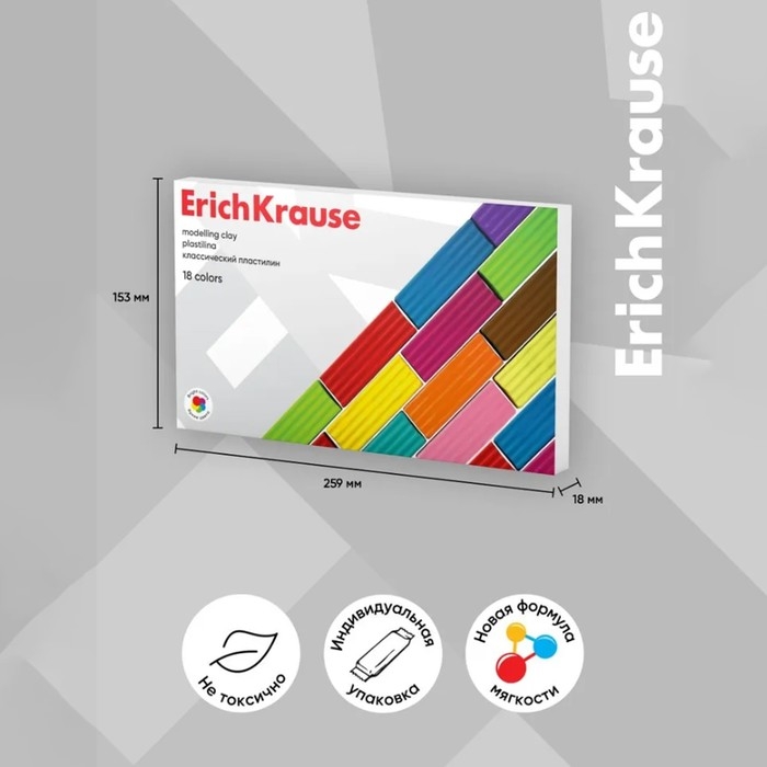 Пластилин 18 цветов, 288 г, ErichKrause "Классический", в картонной упаковке
