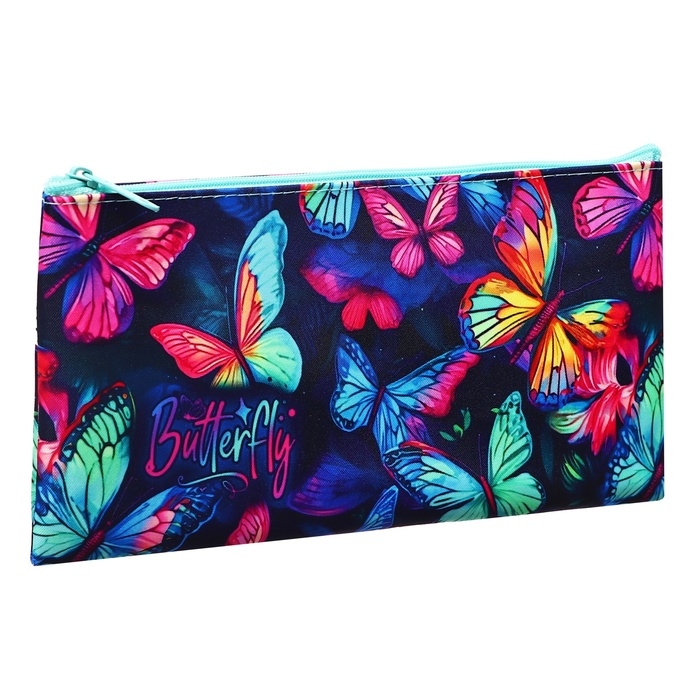 Пенал мягкий, 1 отделение, 120 х 220 мм, плоский, ПМП 17-20 "Неоновые бабочки" 71655