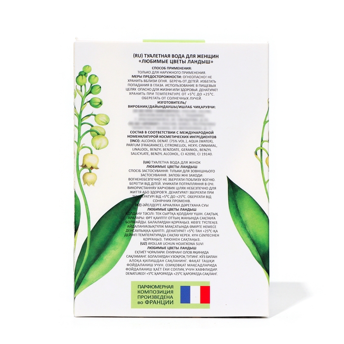 Любимые Цветы "Ландыш" – это чарующая туалетная вода, созданная для подчеркивания вашей женственности и природной красоты. Свежий и изысканный аромат ландыша пробуждает чувства, словно прогулка в весеннем саду.