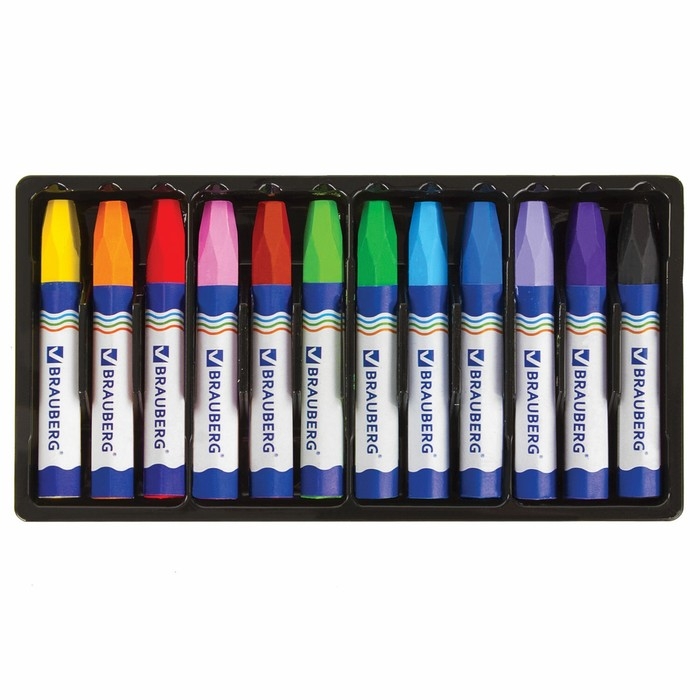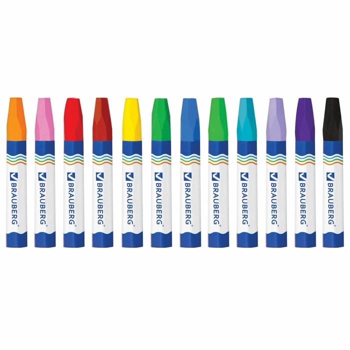 Мелки восковые 12 цветов BRAUBERG, утолщенные, шестигранные, на масляной основе