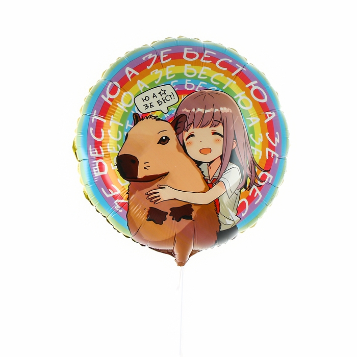 Фольгированный шар «Аниме капибара» — станет приятным дополнением к подарку для любителей японских мультиков. На шаре изображена милая девочка, обнимающая капибару и на нём написано: «ю а зе бест» («ты лучший»). Создайте из нескольких шаров букет или композицию для фотосессии.