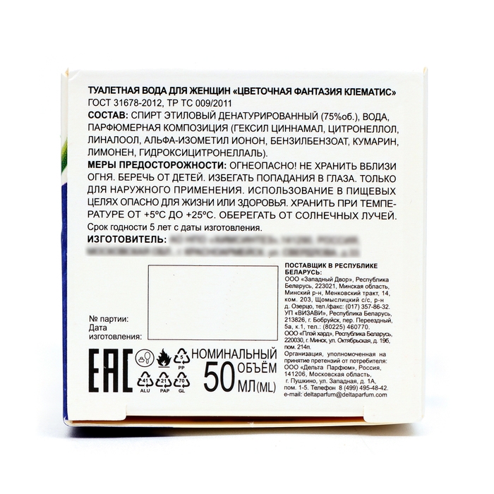 Туалетная вода женская "Цветочная Фантазия" клематис, 50 мл (по мотивам Climat (Lancome)