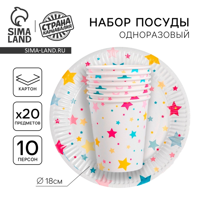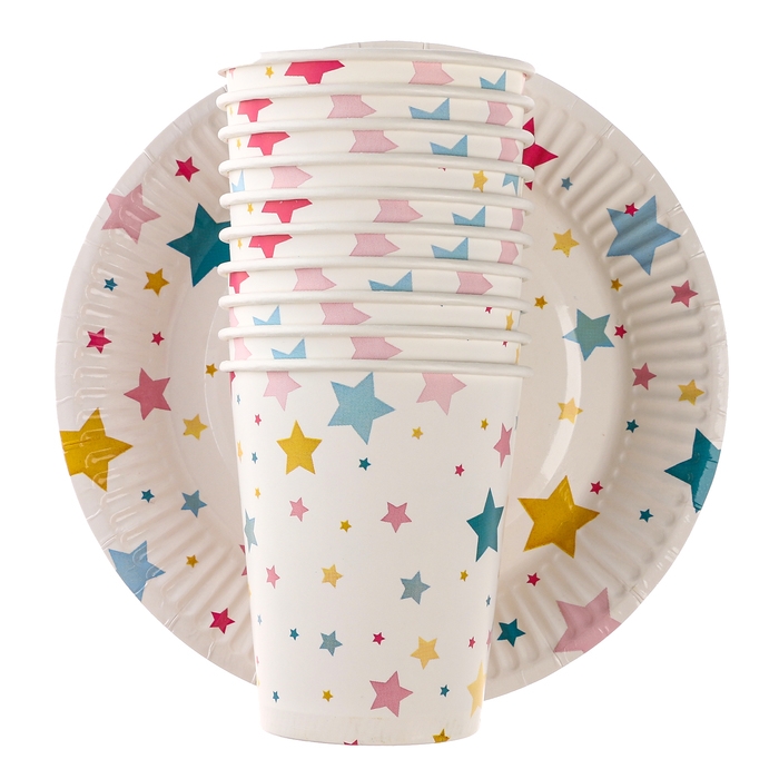Набор бумажной посуды одноразовый Звезды», 10 стаканов, 10 тарелок