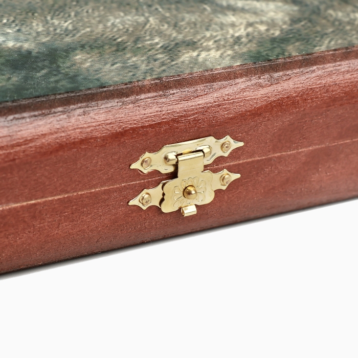 Нарды изготовлены из натурального дерева и представляют собой деревянный кейс с металлическими замками, размером 60 на 60 см в разложенном виде. Фишки также сделаны из дерева. Рисунок на нардах нанесен методом прямой печати по дереву. Внутренняя часть кейса - игровое поле для самой игры в нарды, одна из внешних сторон кейса - игровое поле для игры в шашки и шахматы.