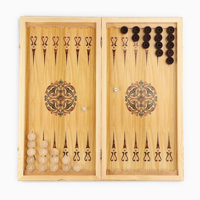 Нарды деревянные большие, настольная игра "Узор", 40 х 40 см, с полем для игры в шашки