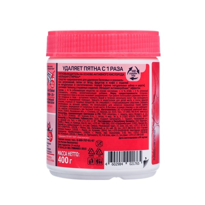 Пятновыводитель на основе активного кислорода БОЛЬШАЯ СТИРКА , 400 г