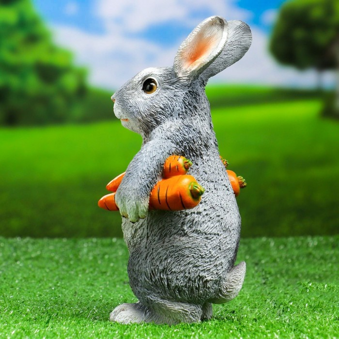 Садовая фигура "Зайка несет морковь" 9х13х22см