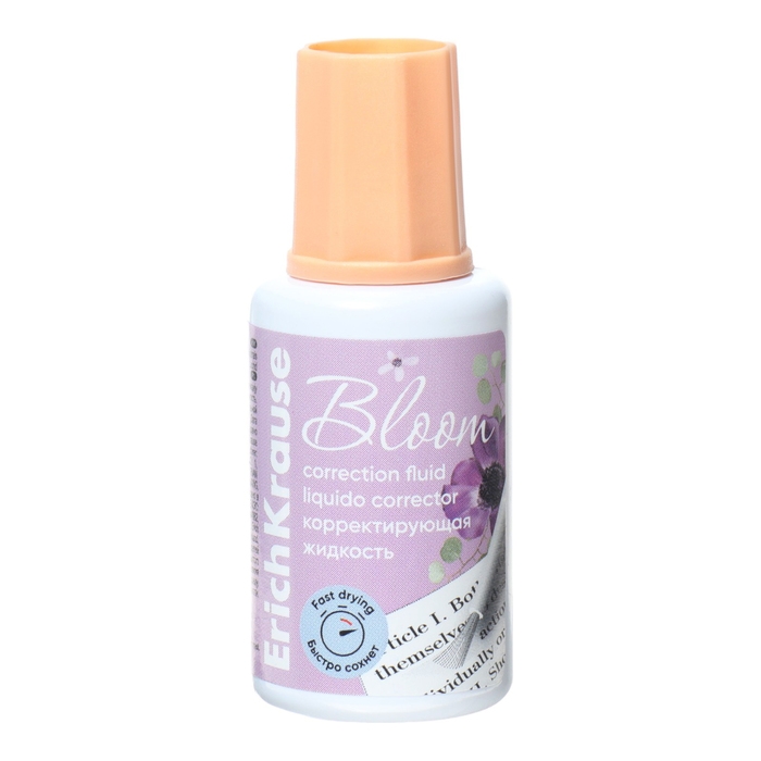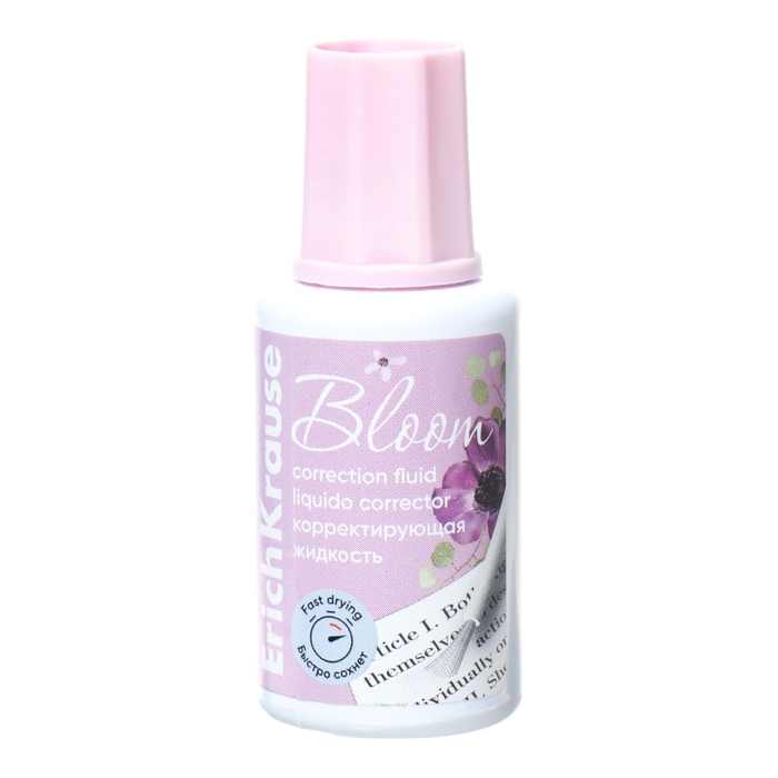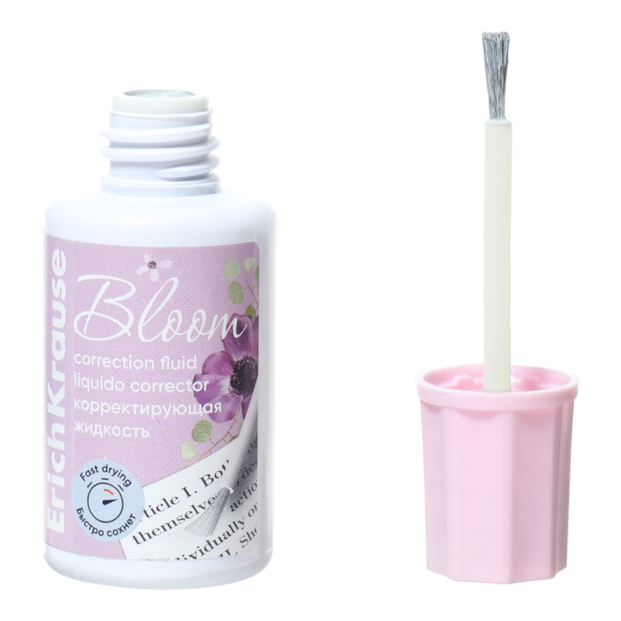 Корректирующая жидкость 20 мл, ErichKrause, Pastel Bloom, экономичный расход, на основе растворителя, кисть, микс (цена за 1 шт)