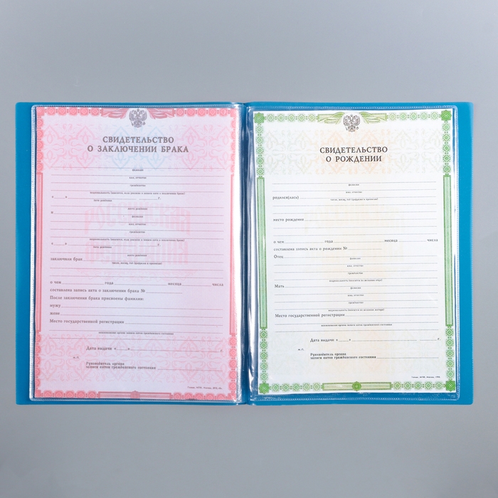 Папка для семейных документов "Котик" синий цвет, 4 комплекта документов, 19 карманов