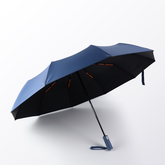 Зонт автоматический «Однотон», 3 сложения, 10 спиц, R = 51/58 см, D = 116 см, цвет синий