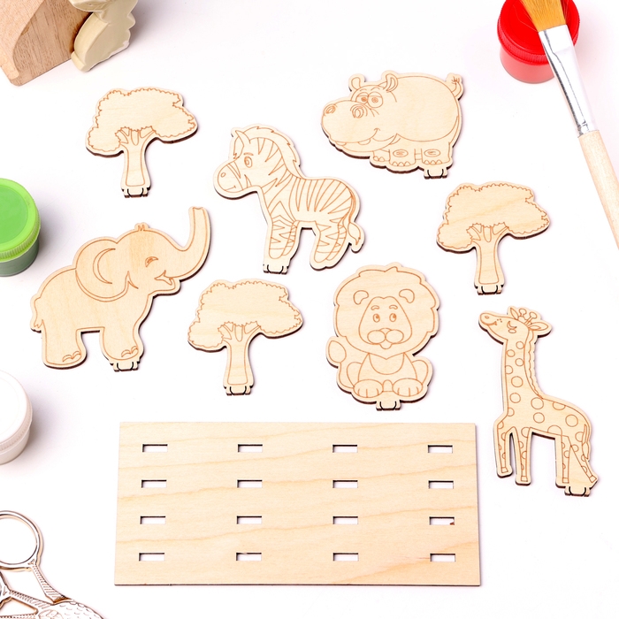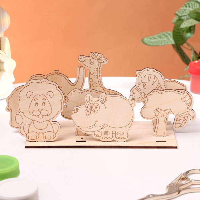 Деревянная объемная раскраска "Сафари", 7 фигур, подставка