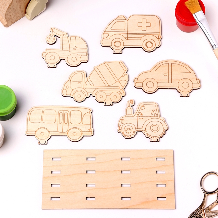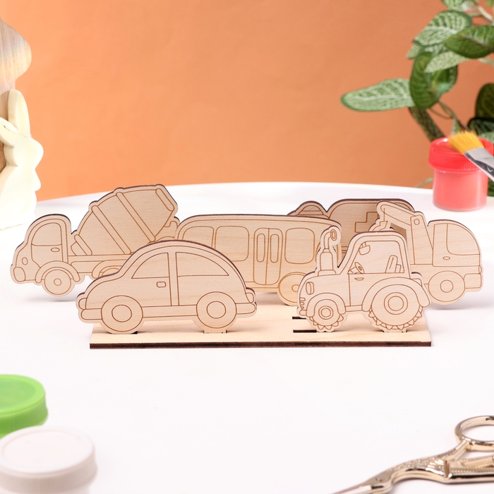 Деревянная объемная раскраска "Транспорт", 6 фигур, подставка