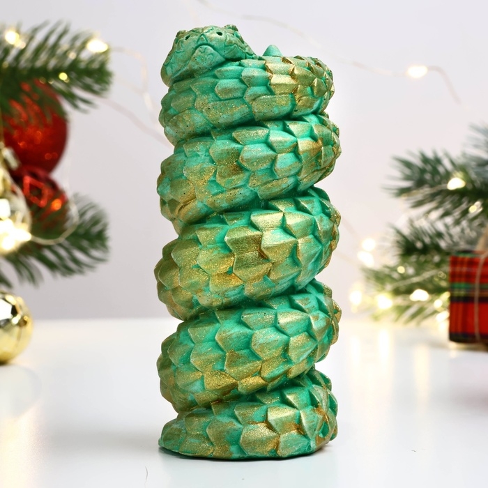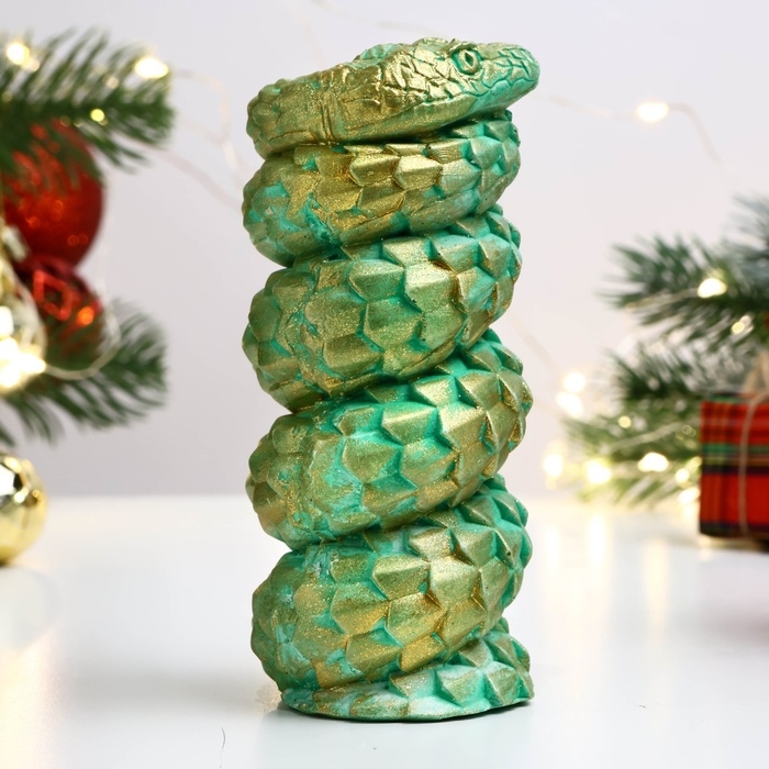 Новый год. Символ 2025. Фигура "Змея витая" зеленая с позолотой, 10х5см