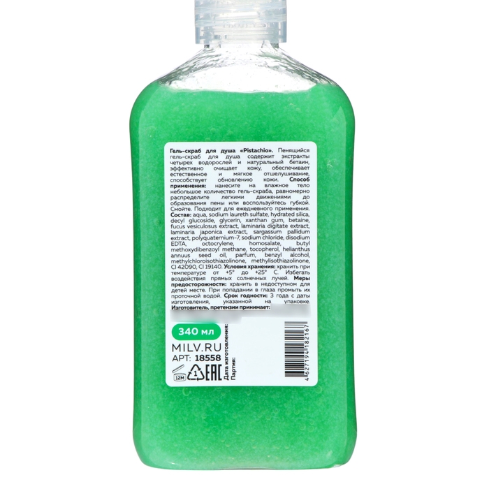 Гель-скраб для душа Milv "PISTACHIO", 340 мл