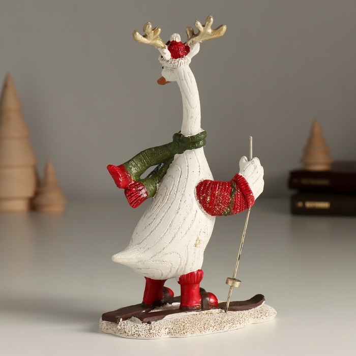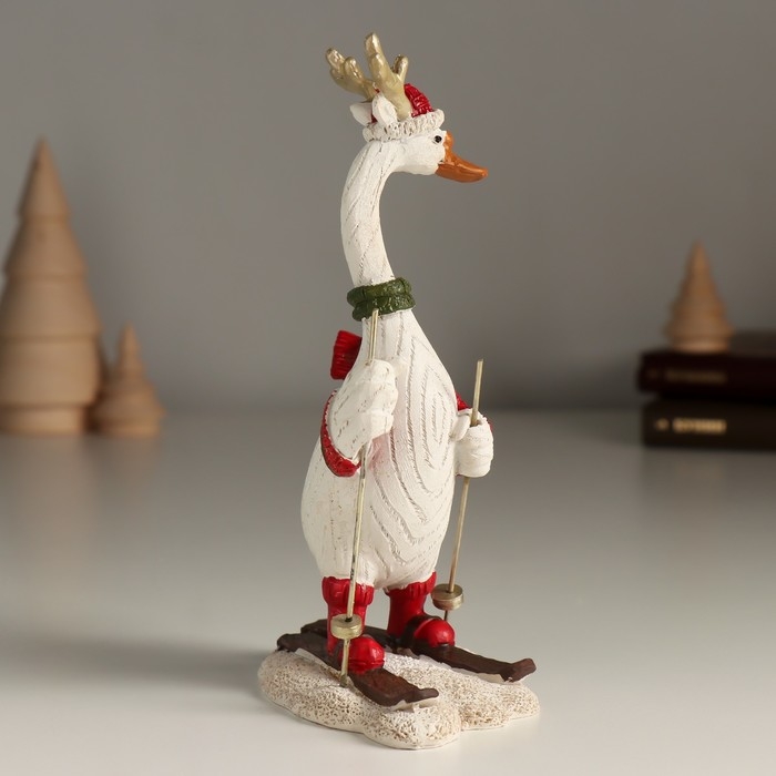 Сувенир полистоун "Гусь с оленьими рожками на лыжах" 10х6х16,5 см