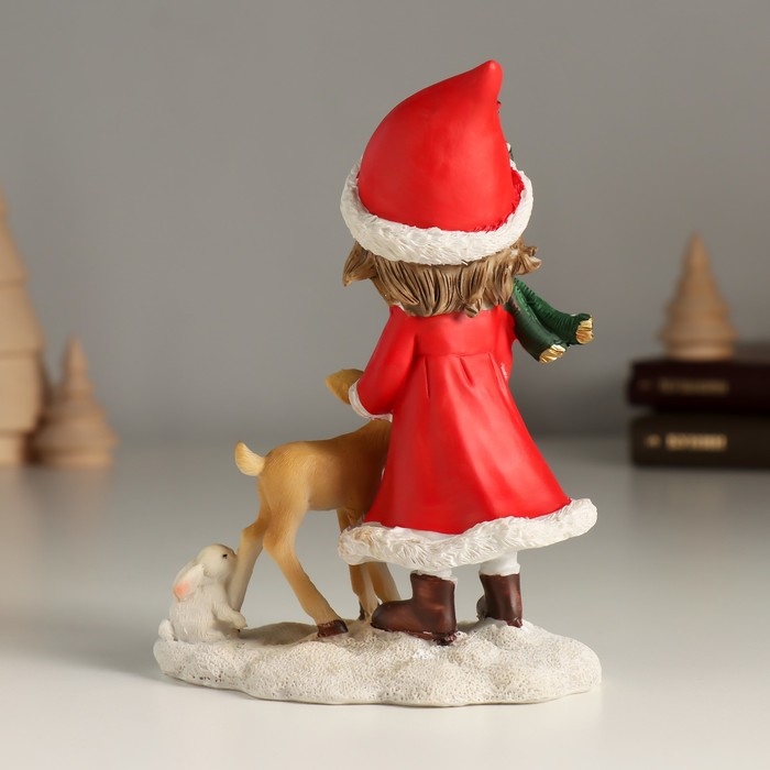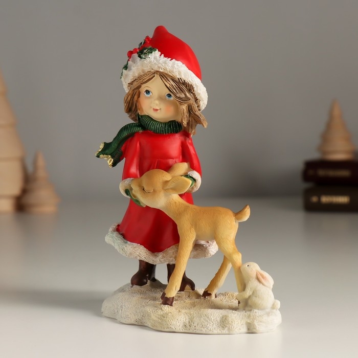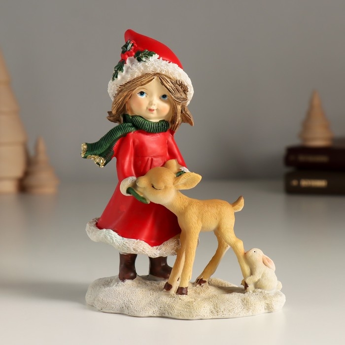 Сувенир полистоун "Девочка в красном с оленёнком" 10х6х13 см