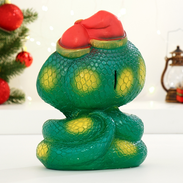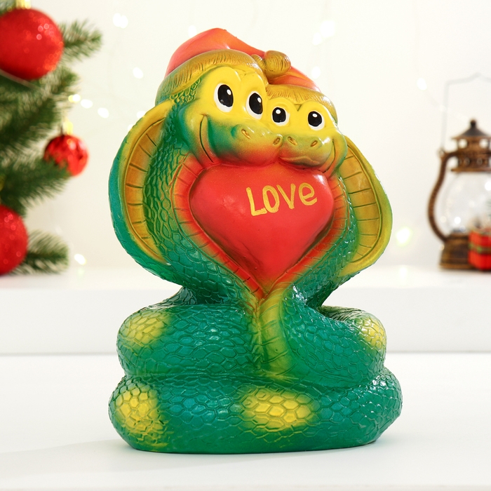 Новый год. Символ 2025. Копилка "Змеи с сердцем" зеленая, 24см