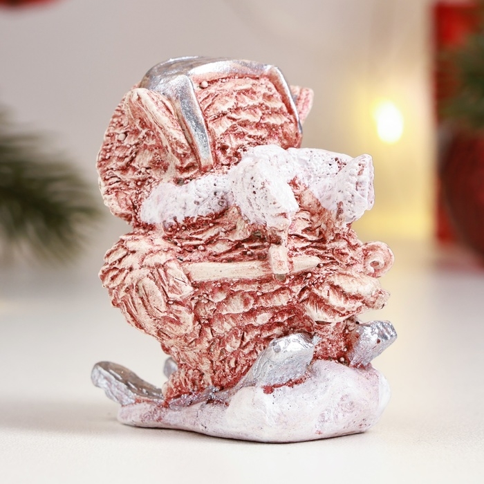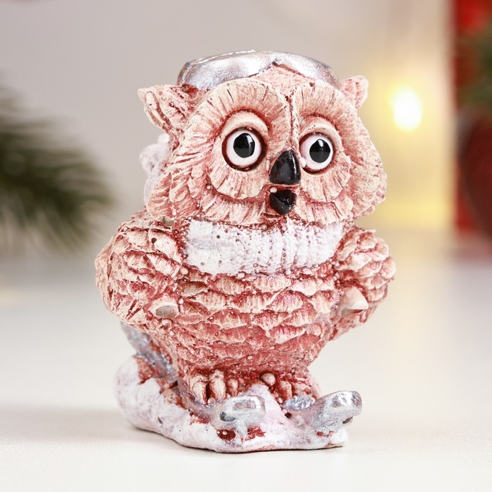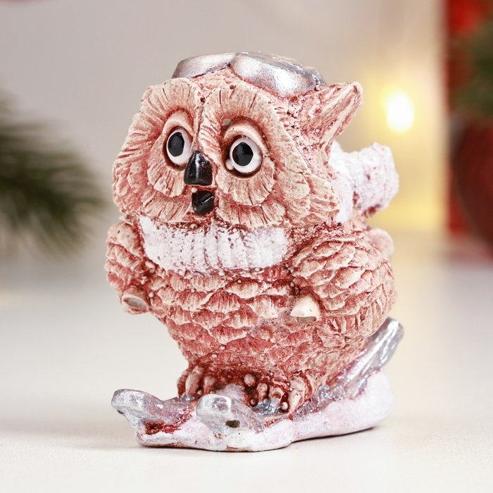 Фигура "Сова на лыжах" бежевая, 6х6х5см