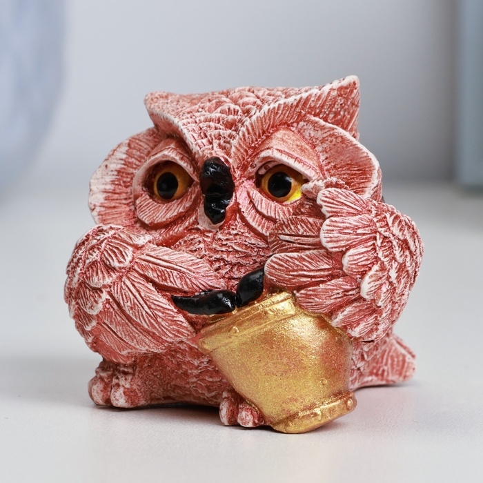 Фигура "Сова с барабаном" красно-коричневая, 6х6х5см
