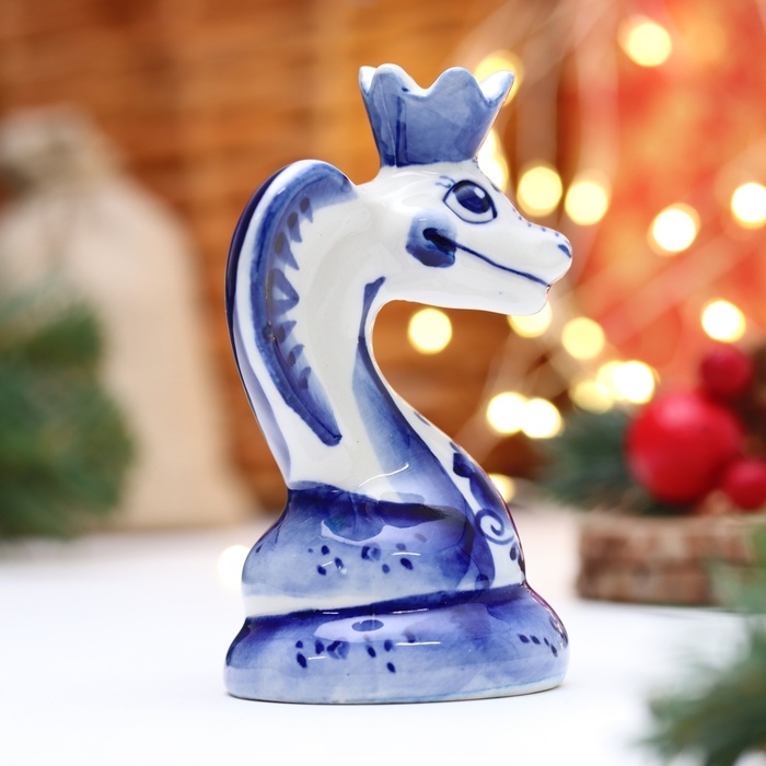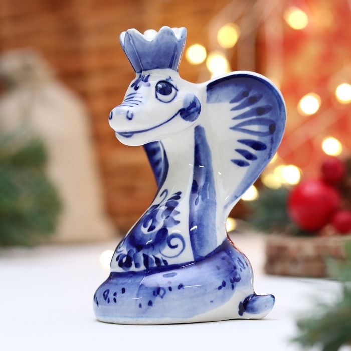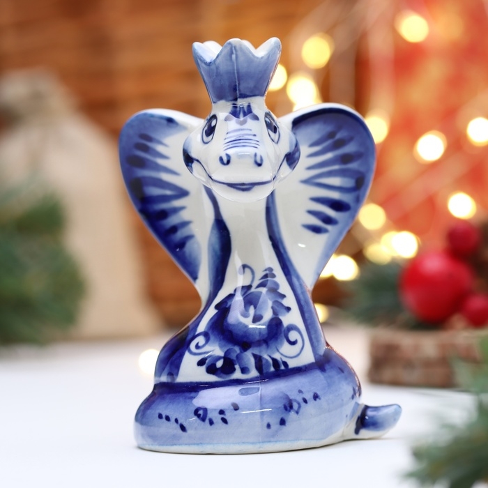 Новый год. Сувенир символ года "Змея с короной", гжель