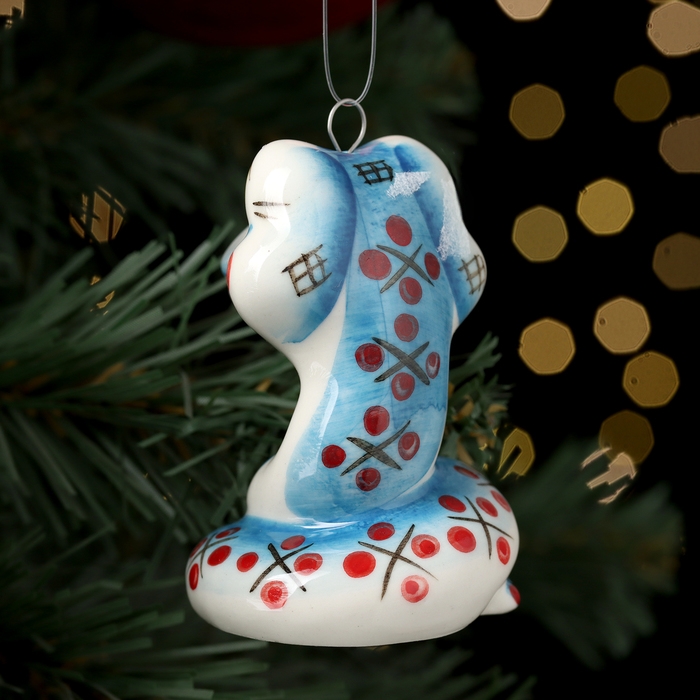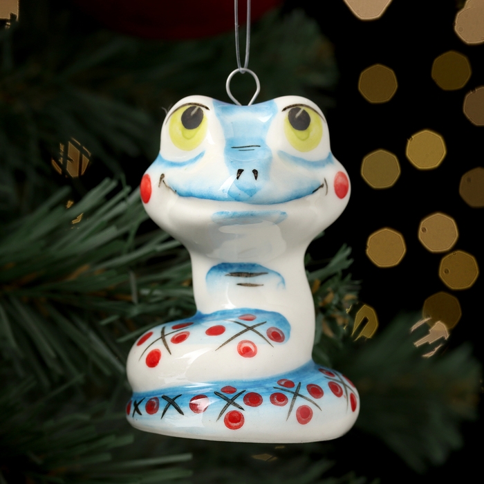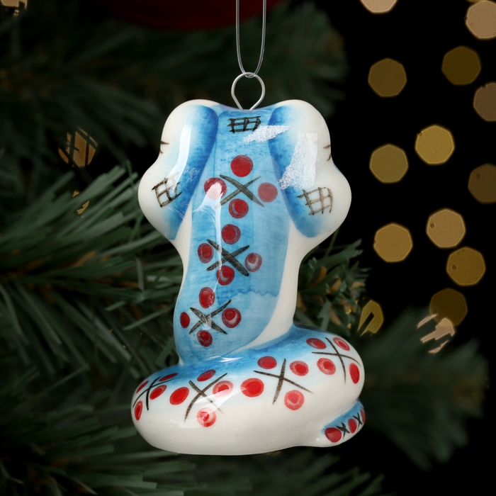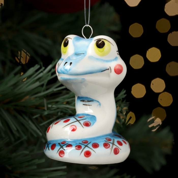 Новый год. Ёлочная игрушка символ года "Змей Улыбка синий", 7 см, фарфор