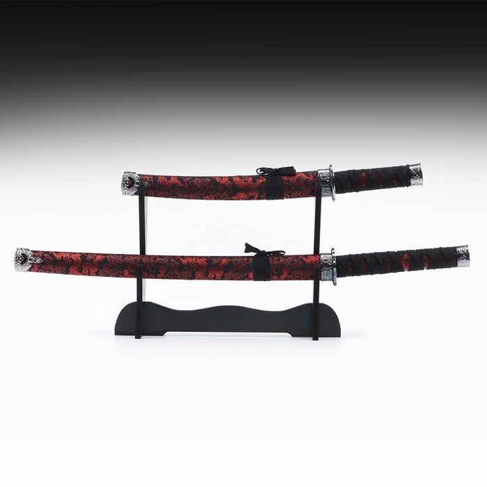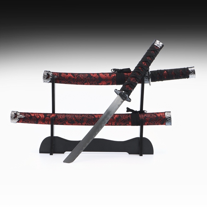 Сув. изделие катаны 2в1 на подставке, ножны кожзам,красный дракон на черном 47/70см