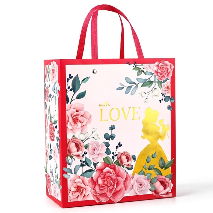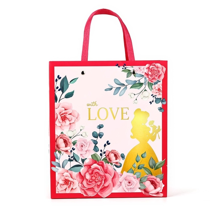 Пакет подарочный ламинированный с тиснением "With Love", Принцессы, 23х27х11,5 см