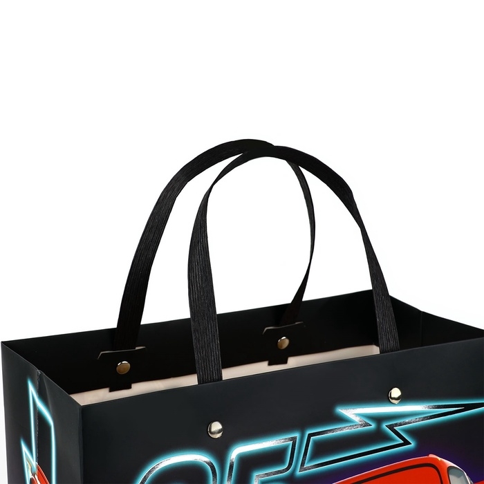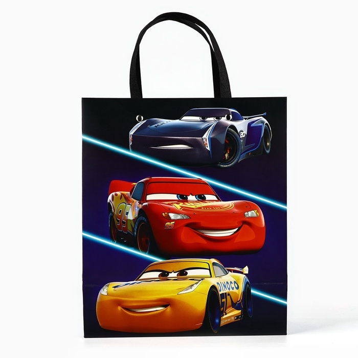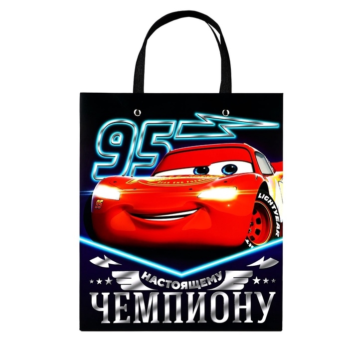 Пакет подарочный ламинированный с тиснением "Чемпиону", Тачки, 23х27х11,5 см