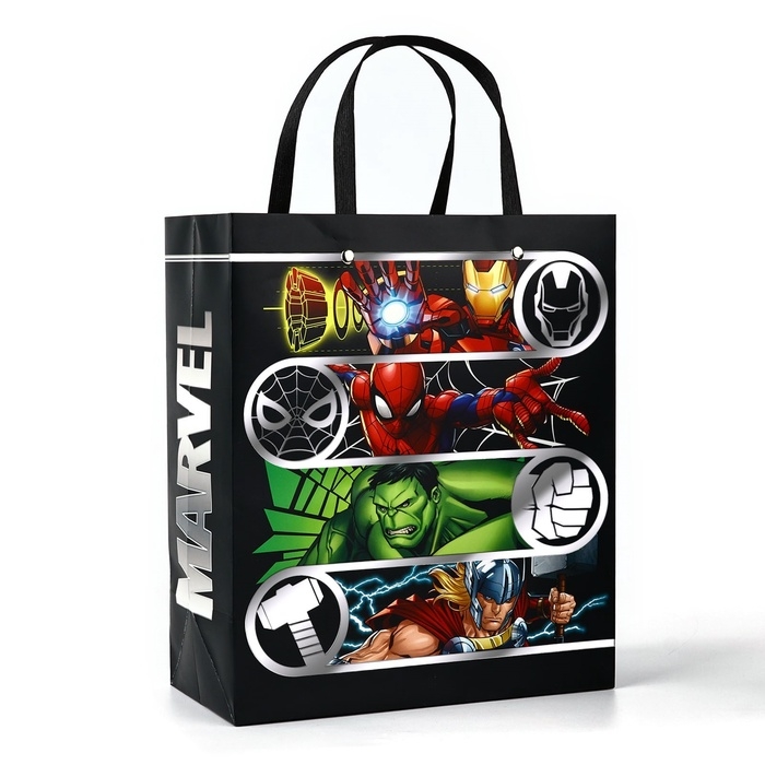 Пакет подарочный ламинированный с тиснением, Мстители, 23х27х11,5 см