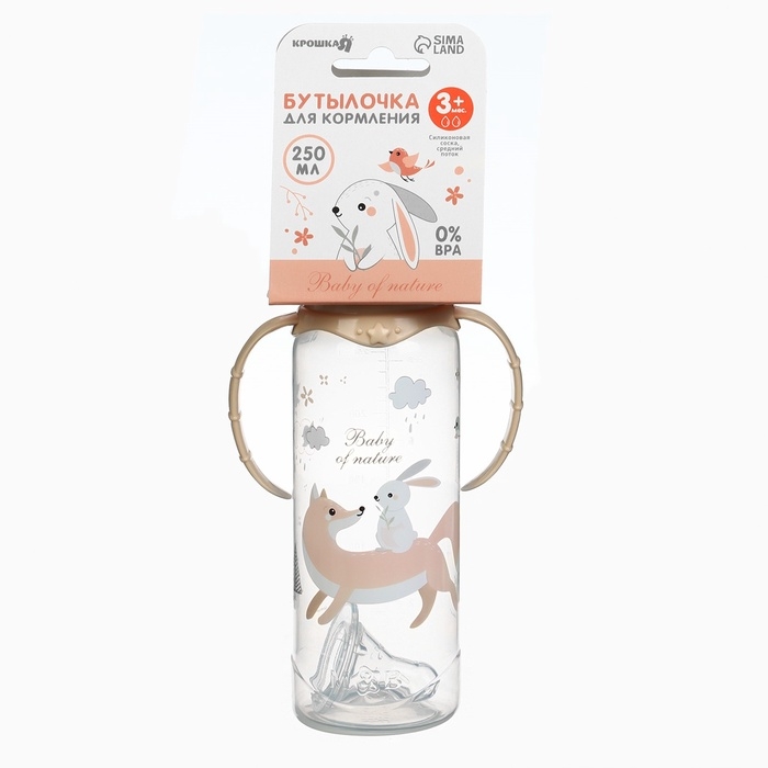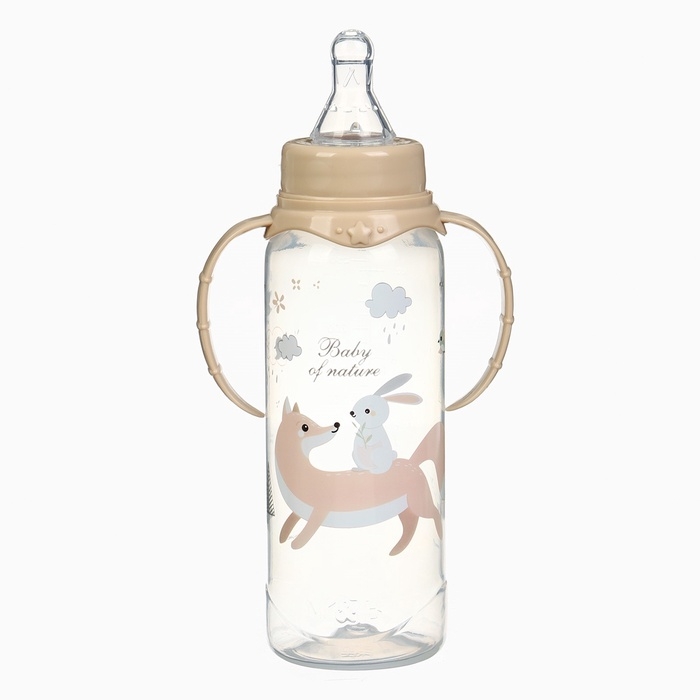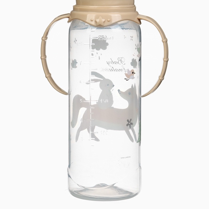 Бутылочка для кормления «Лесные друзья» 250 мл, цилиндр, с ручками, цвет бежевый