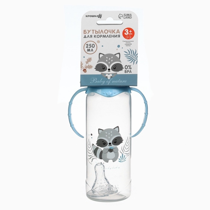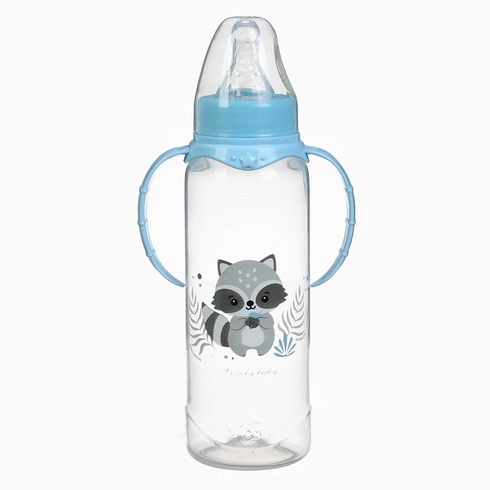 Бутылочка для кормления «Lovely baby» 250 мл, цилиндр, с ручками, цвет голубой