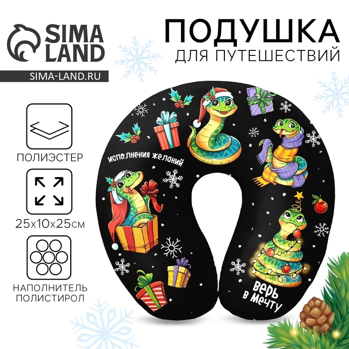 Новый год. Подушка для путешествий антистресс «Исполнения», чёрный