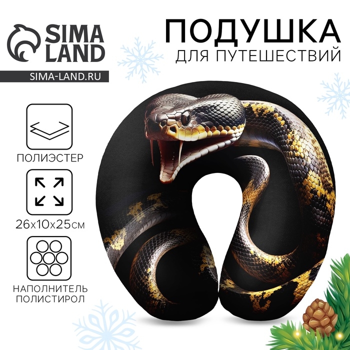 Новый год. Подушка для путешествий антистресс «Змея», чёрный