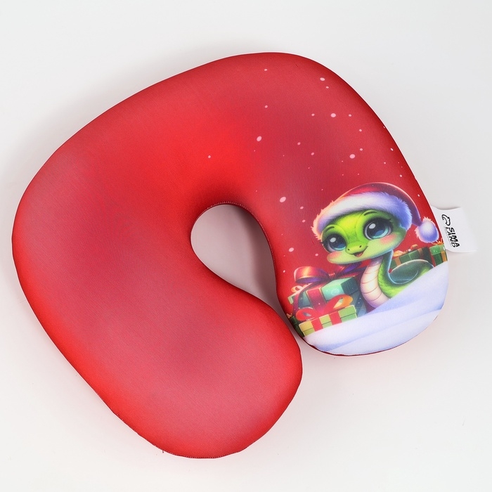 Новый год. Подушка для путешествий антистресс «Змея с подарками»,