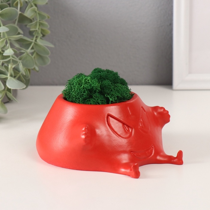 Кашпо бетонное "Злобный смех" со мхом 6,5*12,5см красный (мох зеленый стабилизированный)