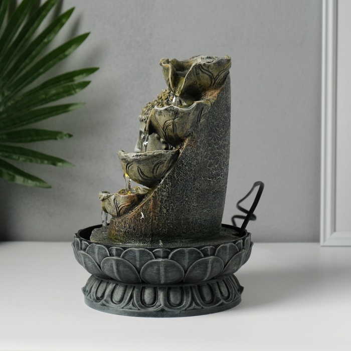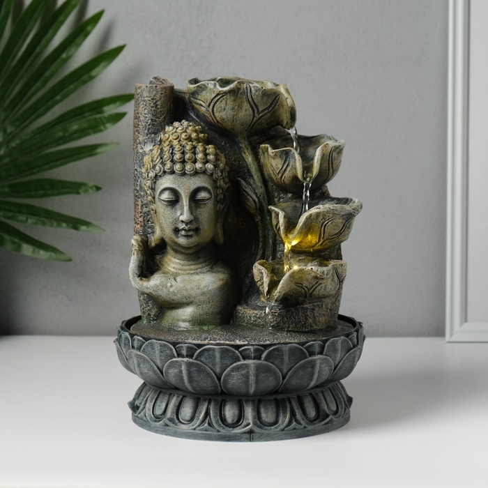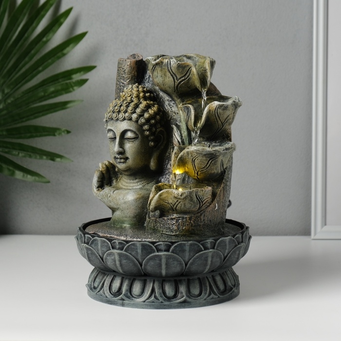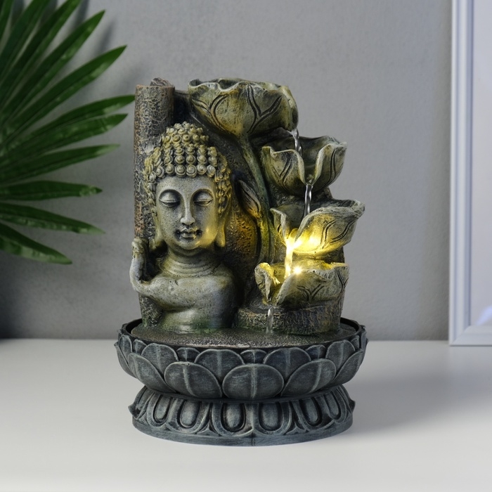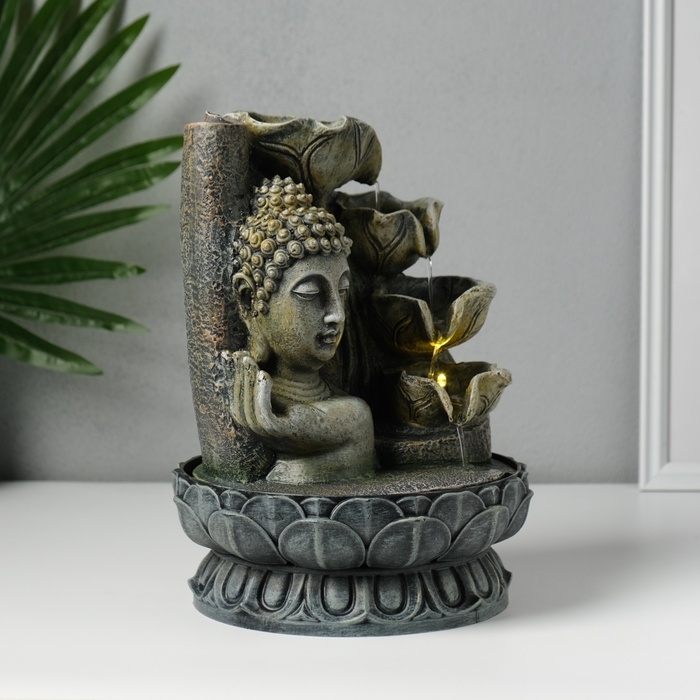 Фонтан настольный от сети, подсветка "Будда на ладони" серый 20,5х20,5х27 см