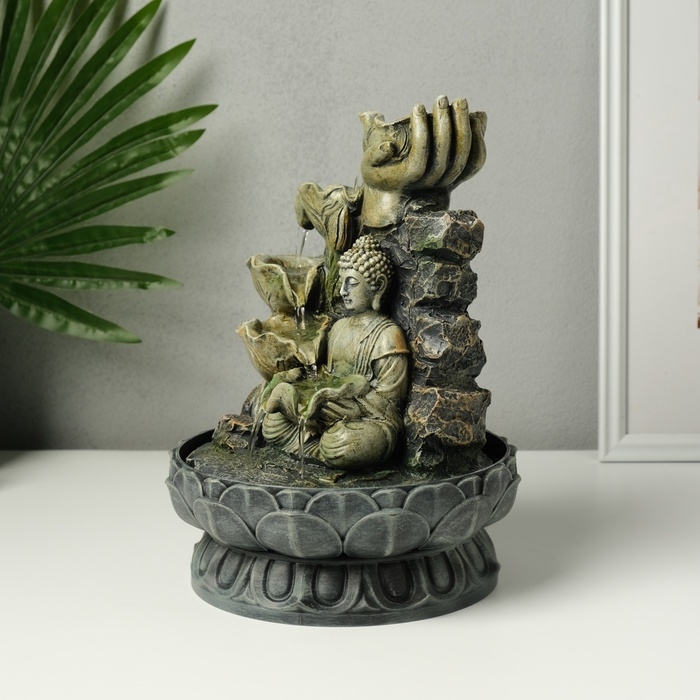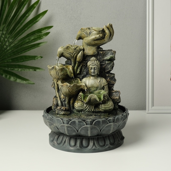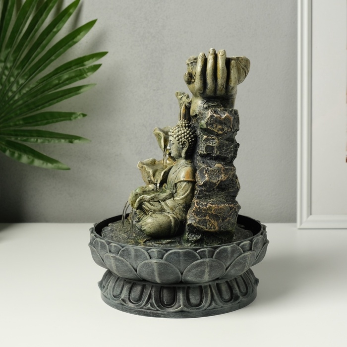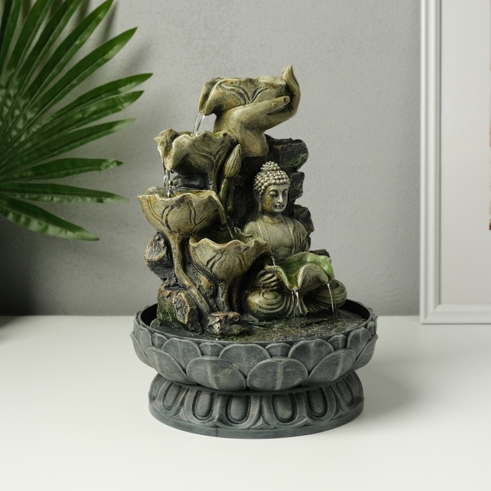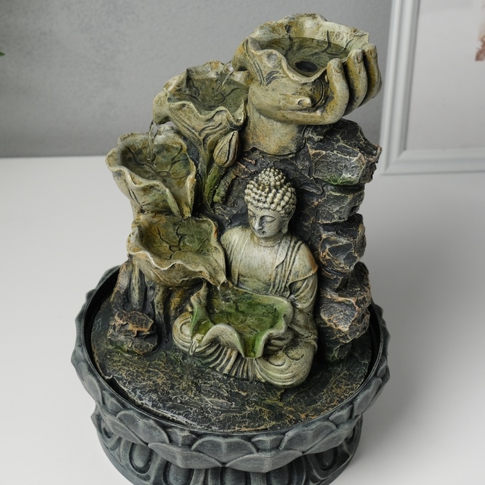 Фонтан настольный от сети "Будда с цветочным водопадом" серый 20,5х20,5х27 см