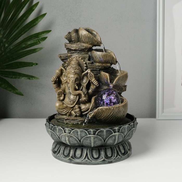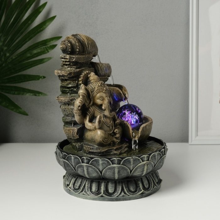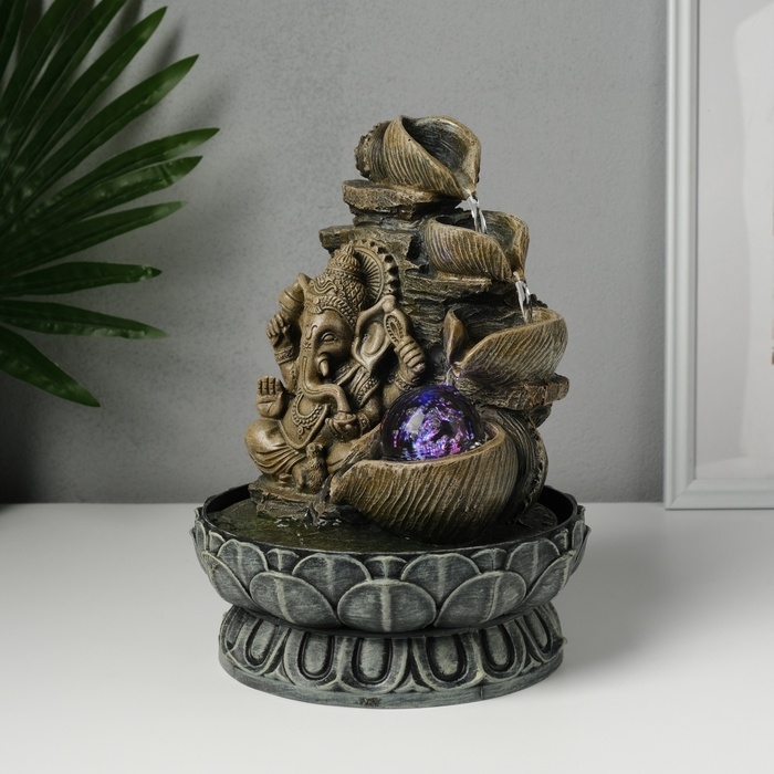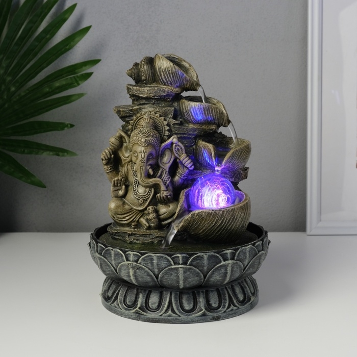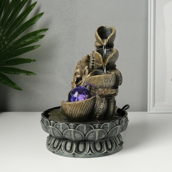 Фонтан настольный от сети, подсветка "Ганеша - Мудра Абхая" серый 20,5х20,5х26,5 см