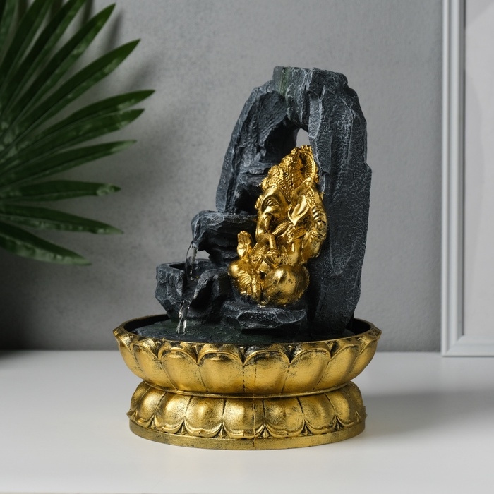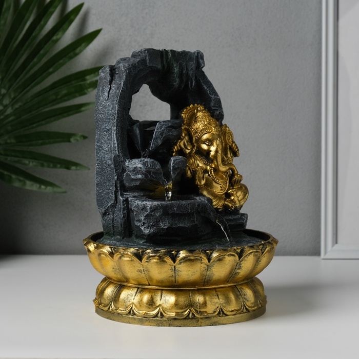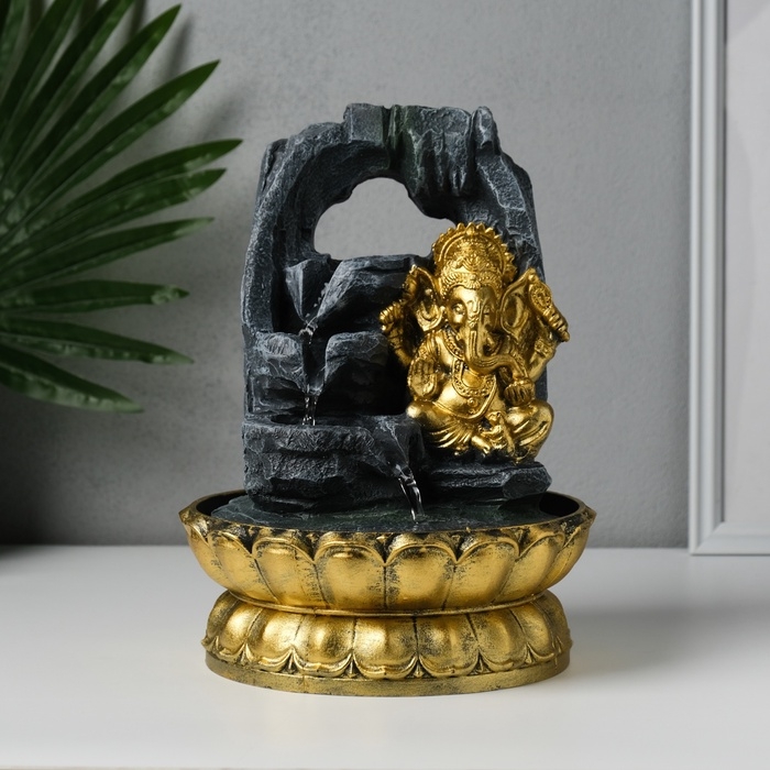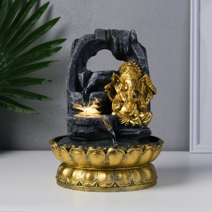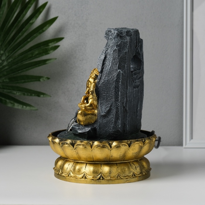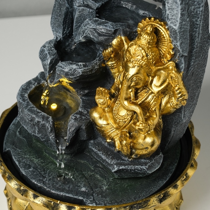 Фонтан настольный от сети, подсветка "Ганеша в скалах с водопадом" 20,5х20,5х27,5 см