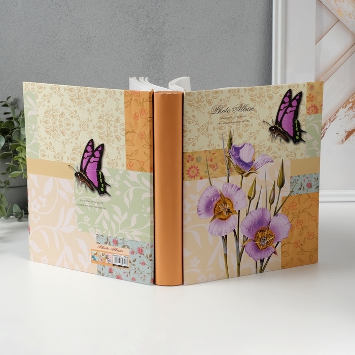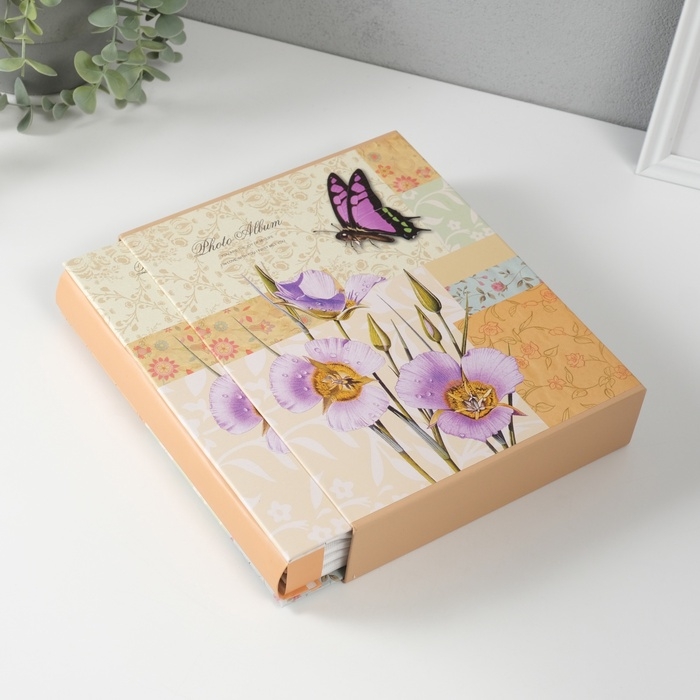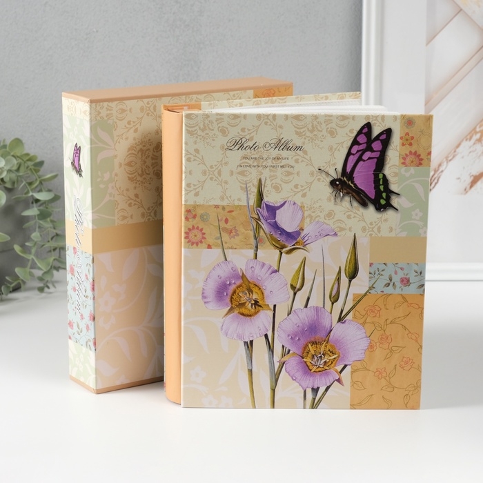 Фотоальбом на 200 фото 10х15 см "Бабочка и ирисы" в коробке 5х21х25,5 см