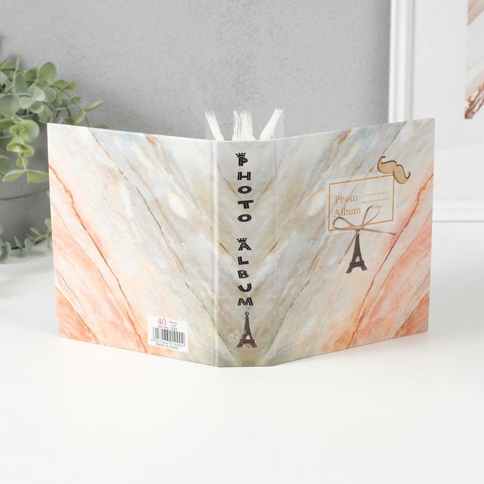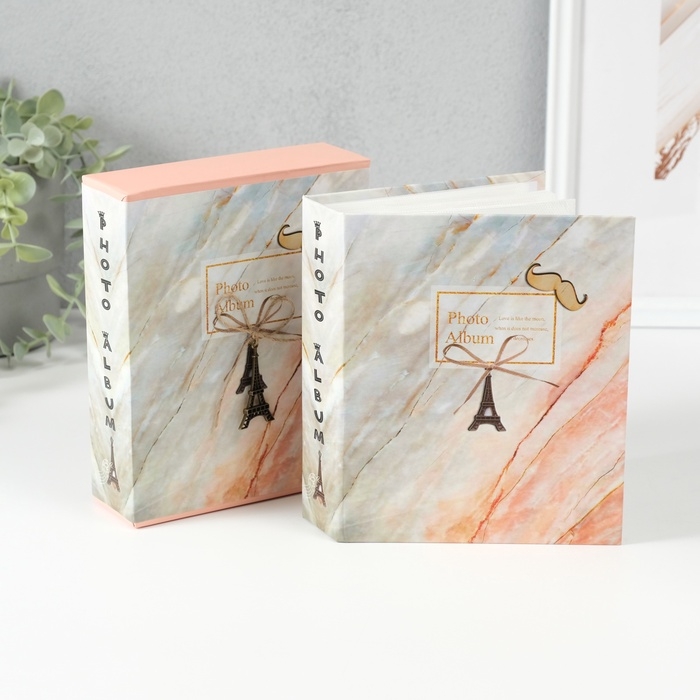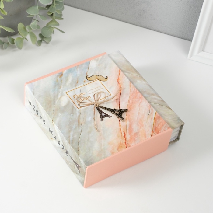 Фотоальбом на 40 фото 10х15 см "Персиковый мрамор и башня" в коробке 17х14х5 см