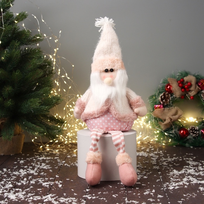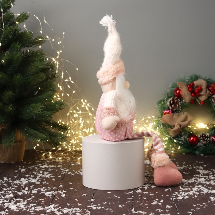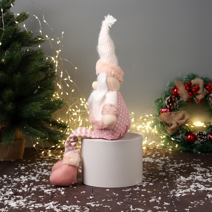 Мягкая игрушка "Дед Мороз с полосатыми длинными ножками" 47х19 см, бело-розовый