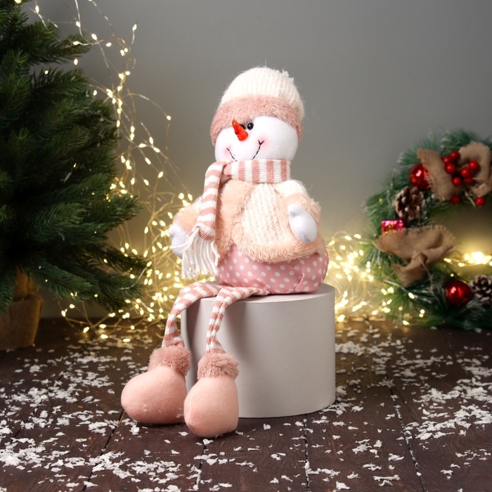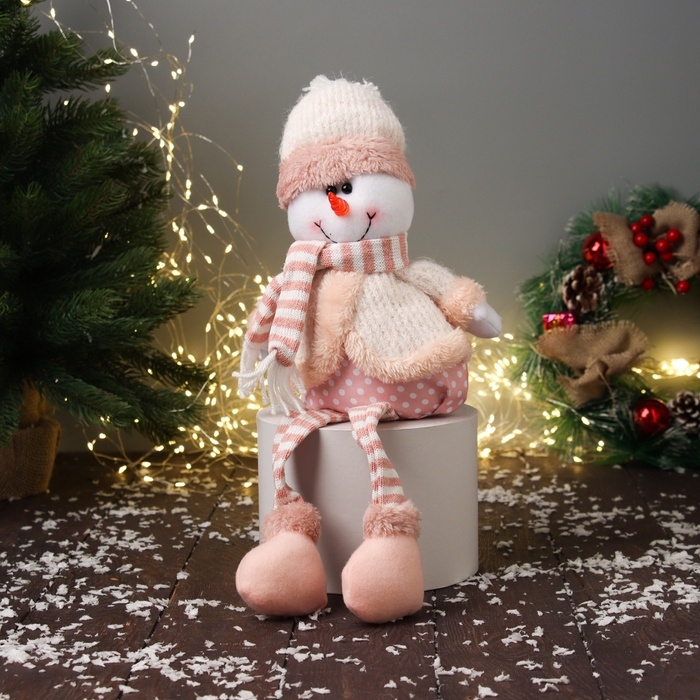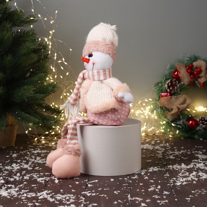 Мягкая игрушка "Снеговик с полосатыми длинными ножками" 43х18 см, бело-розовый