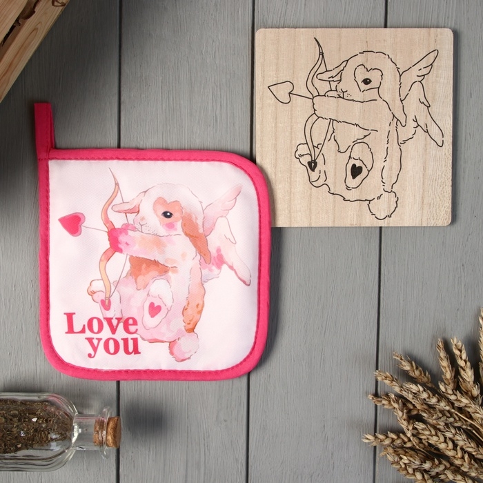 Набор кухонный Доляна Love you: подставка 15*15 см, прихватка 17*17см