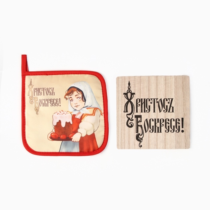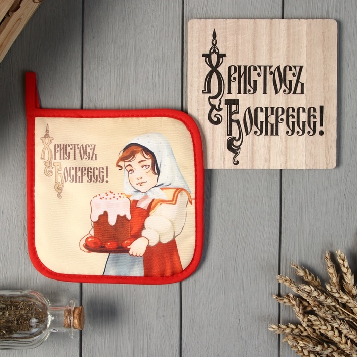Набор кухонный Доляна Пасха: подставка 15*15 см, прихватка 17*17см