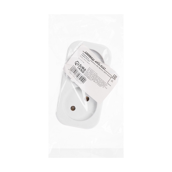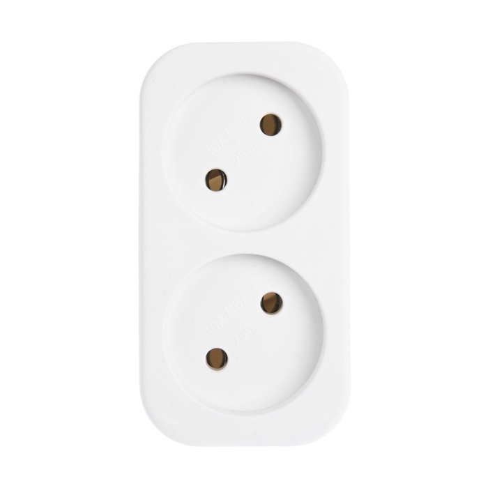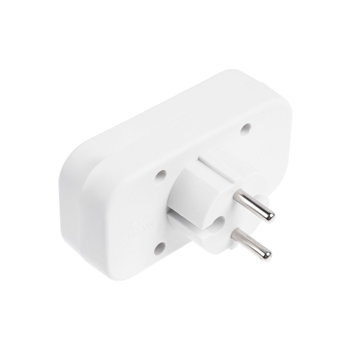 Разветвитель, 2 розетки, 10А, без з/к, 220 В, белый
