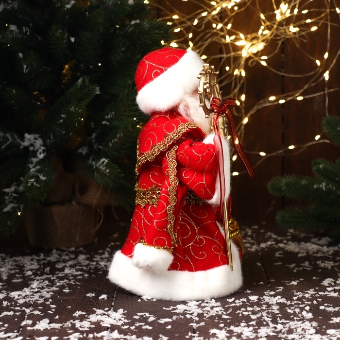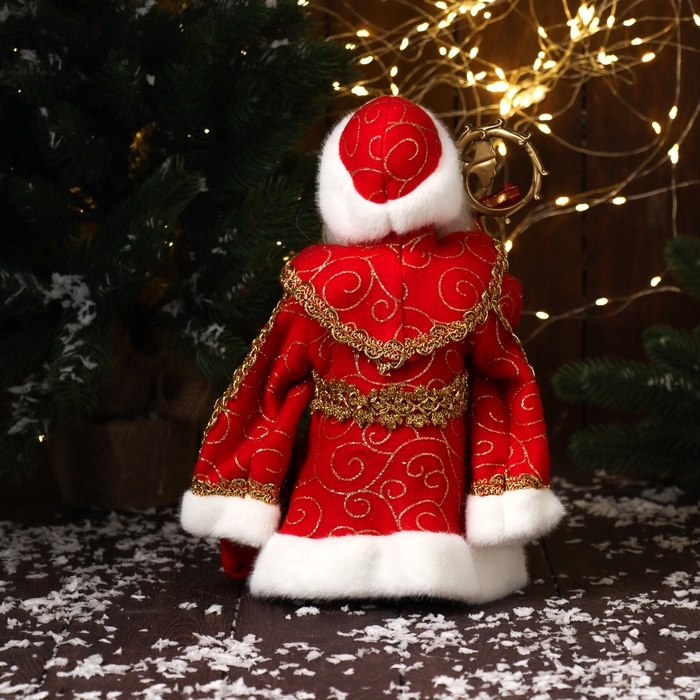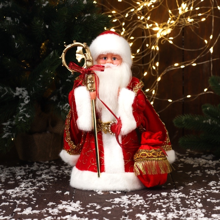 Дед Мороз "В шубе и с мешком с нашивкой" двигается, 30х18 см, красный
